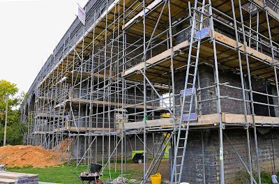 | Scaffolding to repair brickwork on Stanway viaduct. |